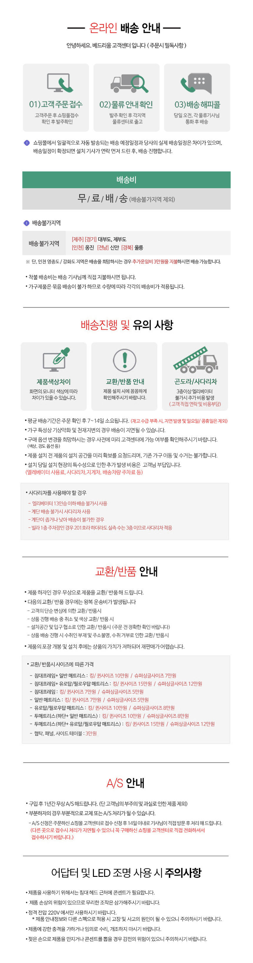 제주도 및 도서산간 지역 배송 불가(엘리베이터 없는 3층 이상 건물 사다리차 이용으로 인한 비용 별도) / 설치비 무료 /