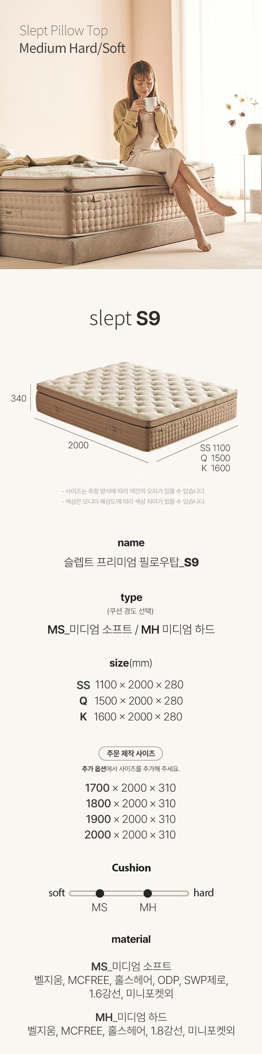| 품명 및 모델명 | [Slept] S9 필로우탑 매트리스 (주문규격 Size) | ||
