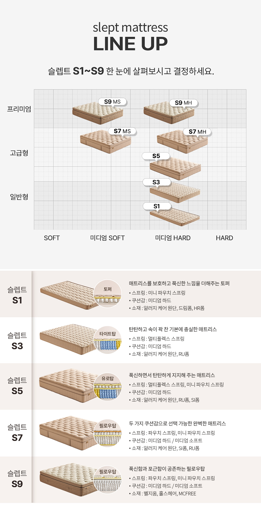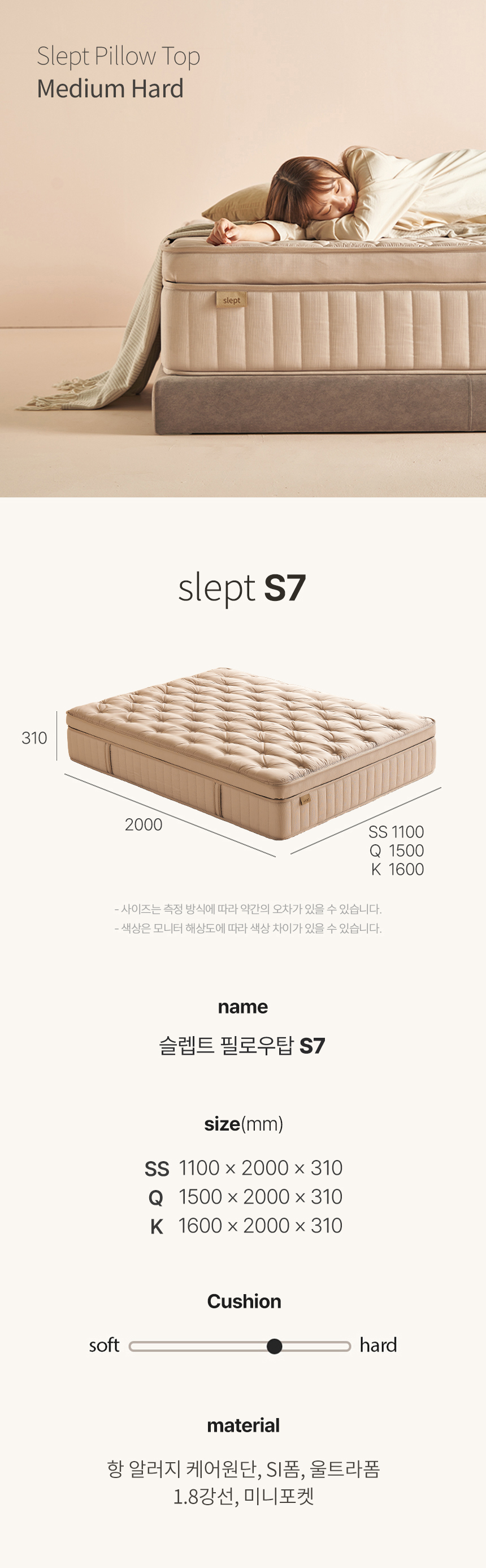 | 품명 및 모델명 | [Slept] S7 필로우탑 매트리스 (SS/Q/K) 경도선택가능 | ||